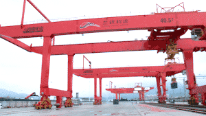 蘭州國際港務區(qū)以蘭州東川鐵路貨運站、蘭州鐵路集裝箱站、蘭州公路集裝箱站和蘭州保稅物流(B型)為主體,是具有多式聯(lián)運方式港口功能的國際港務區(qū),是"一帶一路"經濟帶上國際貿易的樞紐港,"外引內聯(lián)、東聯(lián)西出、西來東去"的合作平臺,連接中亞、西亞和歐洲市場的綜合物流,助推"絲綢之路經濟帶"建設的重要支點。承擔著中亞國際班列、中歐班列、南亞多式聯(lián)運班列的貨物中轉及裝卸任務,這兩臺集裝箱起重機正式投入使用,大大提升了國際港口的吞吐能力,也打破了這種大型港口機械,一直由國內大型國企壟斷的局面。
