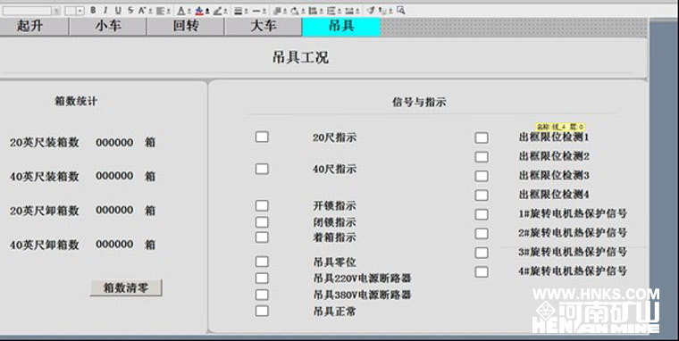 另外該起重機采用了先進的自動控制系統(tǒng),實現(xiàn)了無人化操作功能,如自動尋箱、自動定位、遠程監(jiān)控、數(shù)據(jù)實時傳輸?shù)?。起重機還配備有專用“黑匣子”,對各個部位故障快速診斷,能以直觀的方式讓操作者了解起重機的“健康情況”。為客戶管理貨場提供了解決方案和人性化的操作體驗,在幫助屏幕上附帶了一個專家系統(tǒng),使得整機反饋能縮小到具體的元件、聯(lián)鎖裝置及開關,并為這一系列數(shù)據(jù)建立了一個數(shù)據(jù)庫,為解決問題提供幫助。